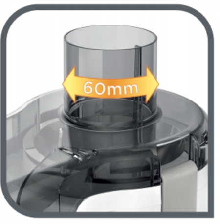 دهانه بزرگ این دستگاه باعث می‌شود تا شما تکه های میوه را بدون نیاز به خرد کردن به راحتی درون دستگاه ریخته و از آن بهره برد.