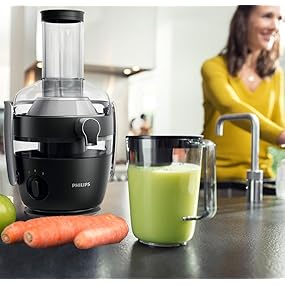 فیلیپس با اتخاذ این دانش، آبمیوه گیری خود را به شیوه ای طراحی کرده است که قادر است انواع میوه یا سبزیجات در طیف های نرم و سفت را با عملکردی عالی آب بگیرد. به دلیل نیروی گریز از مرکز، تفاله به دیواره صفحه فشار داده می شود. آب میوه به یک ظرف می ریزد و تفاله از طریق شکل مخروطی الک به سمت بالا حرکت می کند و همچنین در یک ظرف جمع می شود. این ویژگی عملی است که شما مجبور نیستید که الک را مرتبا تمیز کنید. آبمیوه گیری فیلیپس مدل hr1916 با یک اصل متفاوت کار می کند. آب به صورت آهسته بر روی یک حلزون حلقوی فشرده می شود. به همین دلیل می توانید از آن برای فشار دادن میوه های نرم مانند توت یا حتی سبزیجات برگ دار استفاده کنید.