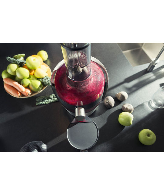 • با لوله تغذیه XXL (80 میلی متر): در وقت خود صرفه جویی کرده و آب گیری را سریع تر شروع کنید. دیگر نیازی به برش بیشتر میوه ها و سبزیجات برای قرار دادن این دستگاه آب میوه نیست. فقط کافی است همه آن را درون لوله تغذیه 80 میلی متری XXL قرار دهید و هر روز از افزایش تغذیه لذت ببرید.