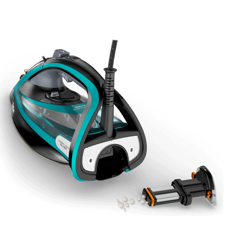 اتو بخار تفال مدل FV9844 دارای ۲ عدد مخزن رسوب زدا در قسمت جلویی و پشت دستگاه است. مخزن اول در قسمت جلوی بدنه و جایی که دریچهی مخزن آب قرار داد، است. مخزن دوم هم پشت بدنه میباشد که میتوانید هر چند وقت یکبار اقدام به جداسازی و پاکسازی این دو مخزن نمایید. جرم و رسوبهای موجود در آب به فیلترهای مخصوص در این مخازن میچسبند. شما میتوانید با استخراج و شستشوی آنها، اقدام به جداسازی و شستشوی املاح و مواد گچی نمایید. بدین ترتیب عملکرد بهینه و بدون اختلال دستگاه در طولانیمدت حفظ خواهد شد. ضمن اینکه بخار خاص از کفی بر روی سطح پارچه انتقال مییابد.