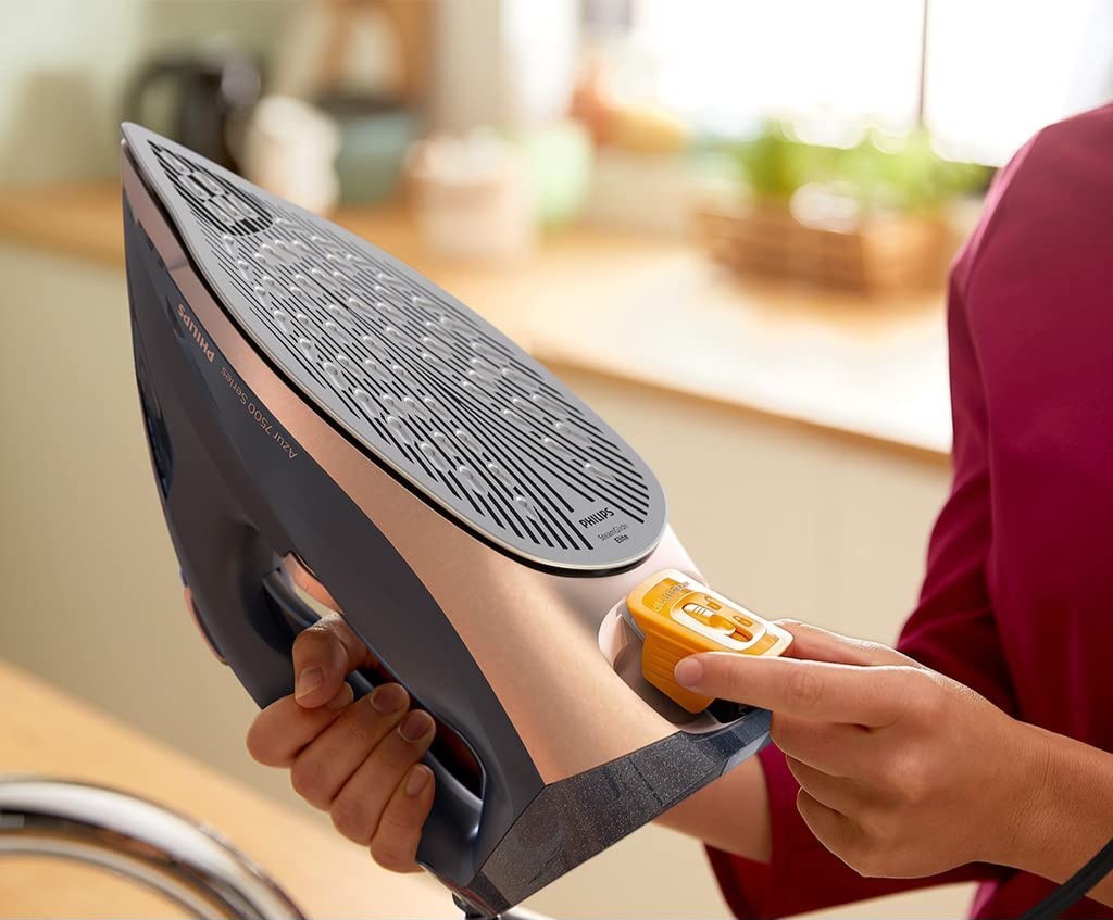این غول هلندی با توان 3200 وات و قدرت بخار لحظه ای 260 گرم بر دقیقه هر جنس لباسی را در یک حرکت کاملا صاف میکند . این مدل برند فیلیپس دارای عقربه تنظیم دمای کفه که کاربر میتواند گرمای کفه را با توجه به جنس پارچه تنظیم کند تا به نتیجه ایده آل برسد .