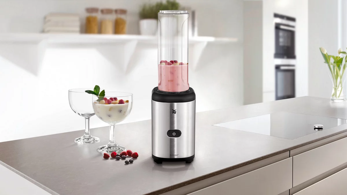 اسموتی های خوشمزه صبحگاهی در حال حرکت هرگز به این آسانی نبوده و هرگز به این خوبی به نظر نمی رسیدند: میکسر WMF Kult X Mix & Go مجهز به ظرفی است که می تواند به عنوان بطری نوشیدنی نیز استفاده شود و به راحتی تمیز می شود.