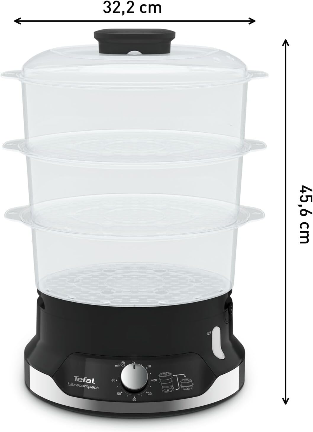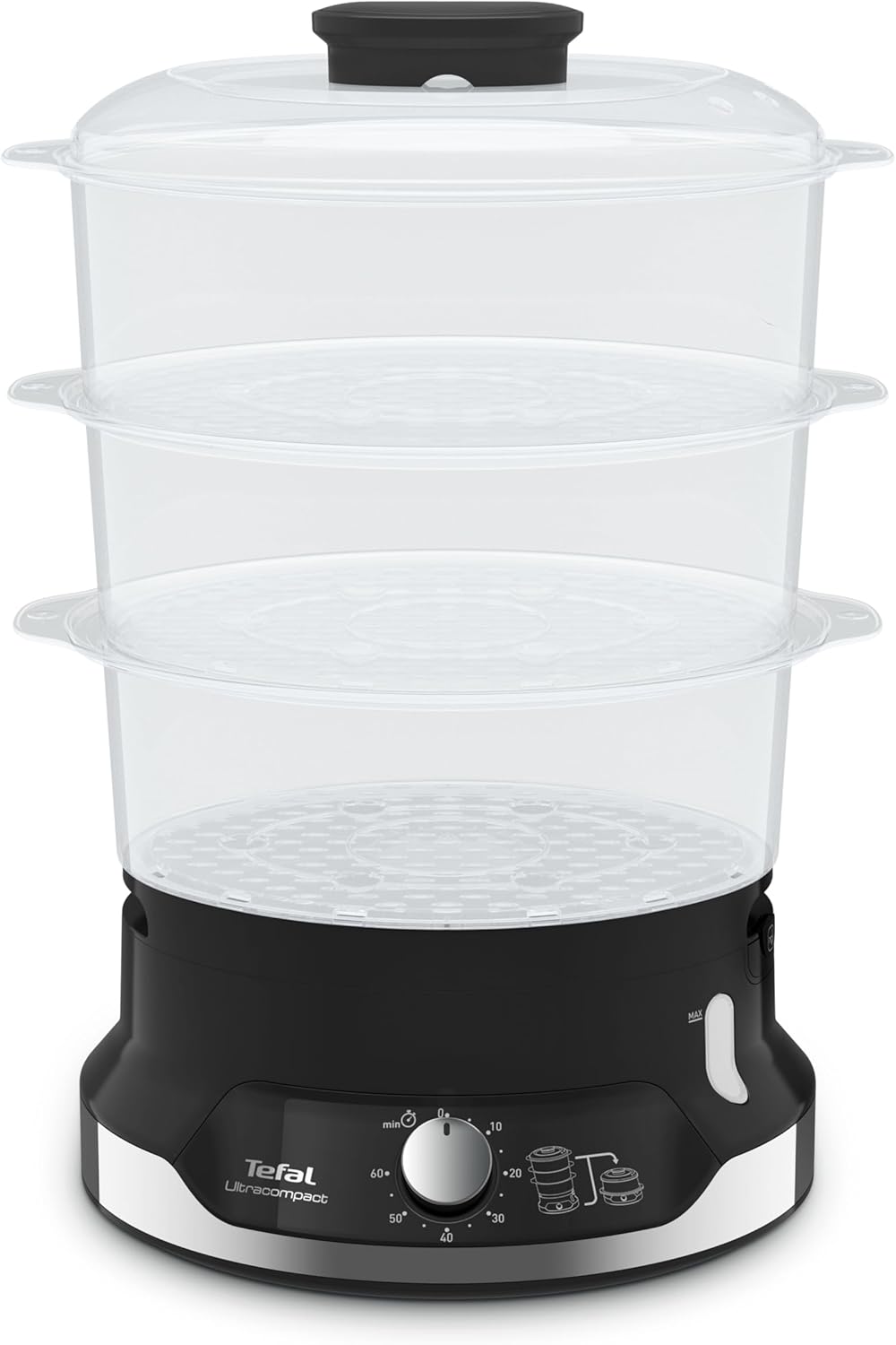 بخارپز تفال مدل Ultracompact به لطف حالت پخت سالم و اندازه بسیار کوچک، به شما امکان می‌دهد دستورهای غذایی مغذی و خوشمزه‌ای بپزید. سیستم ذخیره‌سازی ثبت‌شده و قابل انباشت، فضای زیادی را در کابینت یا پیشخوان آزاد می‌کند و با سه سینی چند طبقه که به شما امکان می‌دهد مواد مختلف را به‌طور همزمان بخارپز کنید، در زمان شما صرفه‌جویی می‌کند. این سینی‌ها که بدون BPA ساخته شده‌اند، روز به روز نتایج سالم و خوشمزه‌ای ارائه می‌دهند.