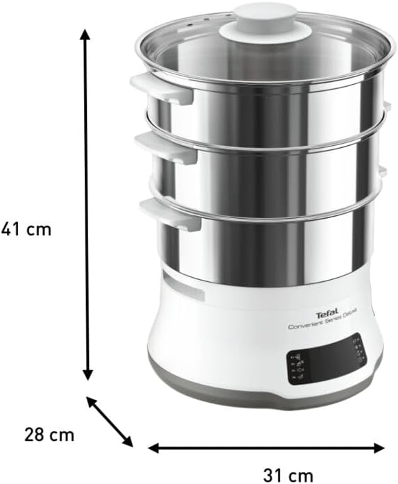 بخارپز تفال سری Convenient Deluxe با صفحه لمسی بسیار کاربرپسند و 8 برنامه ساده، به شما امکان می‌دهد غذاهای خانگی سالم و خوشمزه‌ای تهیه کنید. به لطف کاسه‌های استیل ضد زنگ مرغوب که در 3 طبقه چیده شده‌اند تا نهایت تطبیق‌پذیری و راحتی را ارائه دهند، به علاوه ویژگی‌های پیشرفته و طراحی هوشمند که بخارپز کردن را هر روز ساده‌تر می‌کند، بخارپز کردن هرگز آسان‌تر از این نبوده است.