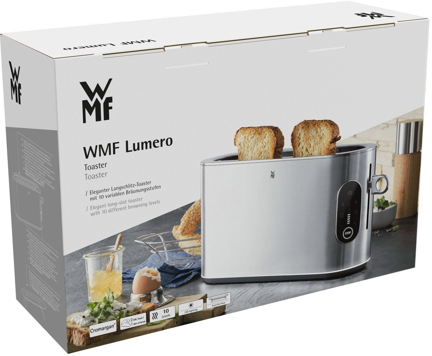 توستر نان WMF مدل414190011 قوی و براق ساخته شده. بطوریکه این ساختار نوید بخش دوام استثنایی با زیبایی شناسی عالی می باشد. حداکثر توان خروجی 980 وات، نتایج سریع برشته کردن را در هر بار استفاده تضمین می کند. صفحه نمایش LED شفاف و ویژگی هایی که بسیار فراتر از برشته کردن ساده است، امکان آماده سازی نان تست را به آسانی میسر می سازد. همچنین علاوه بر برشته کردن، قابلیت هایی همچون گرم کن مجدد، یخ زدایی و کنسل کردن نیز در این محصول گنجانده شده است.توستر WMF Lumero دستگاهی کاربرپسند همراه با فناوری و کارایی بالاست که به لطف آن می توان نان تست را با انتخاب 10 سطح مختلف همانطور که دوست دارید، برشته، قهوه‌ای و یا ترد کنید و مراسم صبحگاهی خود را با سبکی بی انتها، جذاب و مدرن آغاز نمایید.