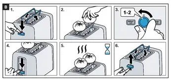 • انتخابگر برای سطح برشته قابل تنظیم از سطوح 1 تا 6 1 = پایین ترین سطح برشته کردن