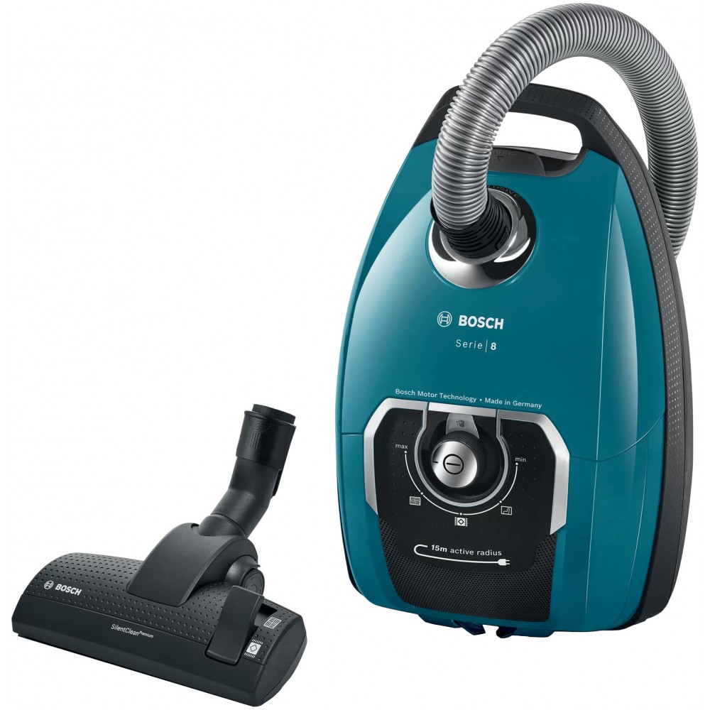 همان طور که در بخش قبلی گفته شد، جارو برقی بوش 81800 از نوع کیسه دار است. نوع کیسه آن پارچه ای است و از سری G ALL کلاس A می باشد. در سایز XL طراحی شده و حداکثر گنجایش آن برابر است با 5 لیتر. از الیاف طبیعی و به صورت چند لایه ساخته شده است بنابراین تمام ذرات گرد و غبار را در خود حبس می کند. جاروبرقی بوش 1800 وات با حداکثر توان، هوا را به داخل مکش می کند. در صورت پُر بودن کیسه، توان مکش پایین نخواهد آمد و با همان کیفیت به کار کردن ادامه می دهد. موتور جاروبرقی بوش آبی به نسبت مدل های دیگر تا 60 درصد مکش بیشتری دارد و هر نوع زباله ای را از بین تار و پود موکت و فرش جدا می کند.