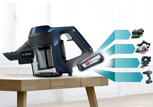 شرکت بوش در مدل BBS611PCK از یک نوآوری خاص استفاده کرده است. در تولید سری 6 باتری‌­های این محصول به لطف برخورداری از فناوری موسوم به Power4All Battery Pack می­‌توان از این باطری‌ها در سایر وسایل برقی این سری نیز استفاده کرد. برخورداری این باتری لیتیوم یونی از ولتاژ 18 و جریان برق 2.5 آمپر بر ساعت یک منبع تغذیه قدرتمند را به این جاروشارژی بخشیده است. این باتری در حالت معمولی خود و بدون استفاده از سری الکتریکی یا POWER BRUSH توانایی کارکرد 30 دقیقه را دارد. در حالت توربو و استفاده از سری الکتریکی آن به علت عملکرد سریع و تولید مکش بالا مدت زمان کارکرد به 8 دقیقه می‌­رسد. گفتنی است که مدت زمان هر بار شارژ کامل دستگاه 4 ساعت خواهد بود.