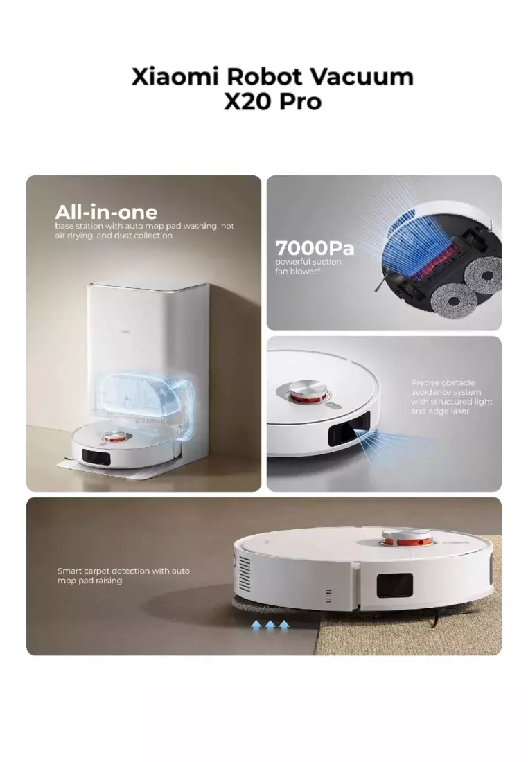 علاوه بر این، Xiaomi Robot Vacuum X20 Pro دارای ویژگی‌های پیشرفته‌ای همچون شستشوی خودکار پد تی، جمع‌آوری خودکار گرد و غبار، و کنترل از راه دور از طریق اپلیکیشن Mi Home/Xiaomi Home است. این امکانات به شما اجازه می ‌دهند تا حتی زمانی که در خانه نیستید، نظافت را به راحتی مدیریت کنید. این جارو رباتیک با ترکیبی از تکنولوژی‌ های هوشمند و قابلیت‌ های کاربردی، به یکی از بهترین گزینه ‌ها برای تجربه نظافت هوشمند تبدیل شده است.