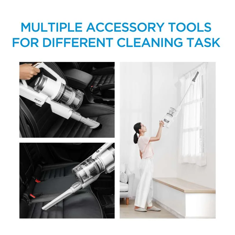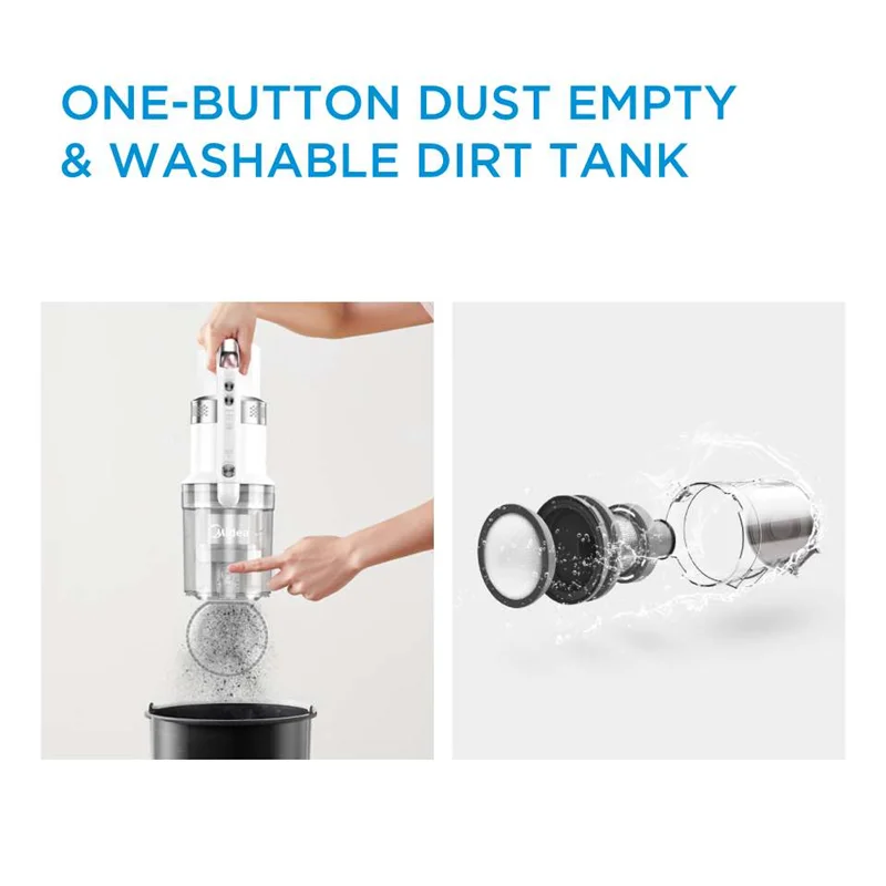 محفظه جمع آوری گرد و غبار این جاروشارژی با ظرفیت بالا تا 0.6 لیتر به راحتی جدا شده و پس از هر بار استفاده به راحتی تمیز می شود. جاروشارژی شارژی میدیا برای جابجایی راحت ساخته شده و  به راحتی در خانه حمل می شود ، بنابراین کاربران می توانند به راحتی سر مکش را تعویض کنند تا بتوانند برای تمیز کردن سطوح مختلف از کف خانه ، اتومبیل ، مبل تا مکان های بالاتر مانند سقف ، پرده… از این محصول استفاده کنند.