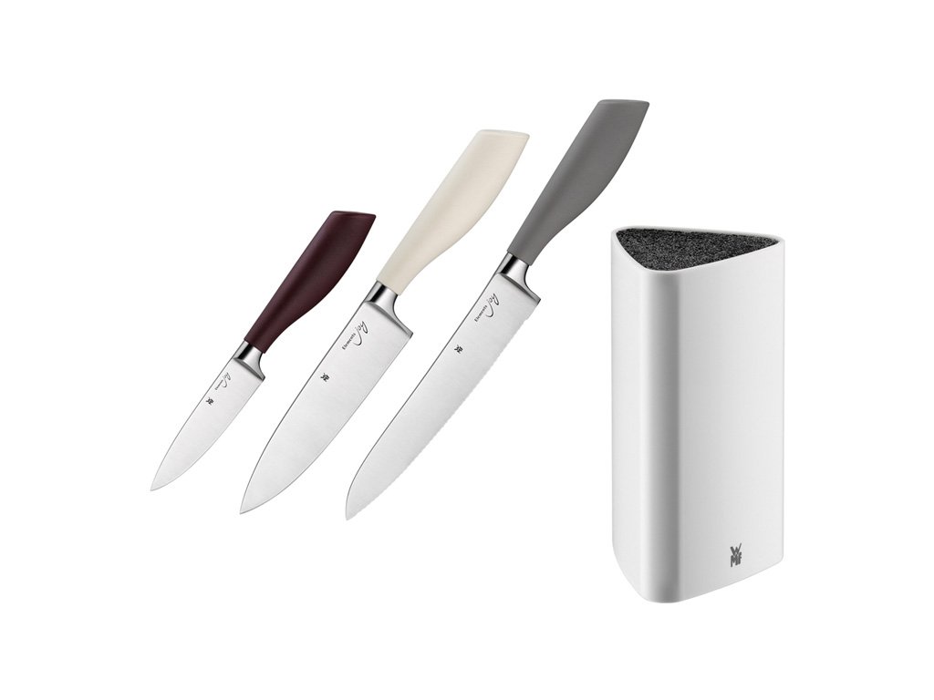 سری چاقو WMF Elements، طراحی ساده و کیفیت WMF. تیغه ها از فولاد مخصوص کارد و چنگال، بسیار تیز و بادوام ساخته شده اند. دسته های ساخته شده از پلاستیک مرغوب به خوبی در دست قرار می گیرند.