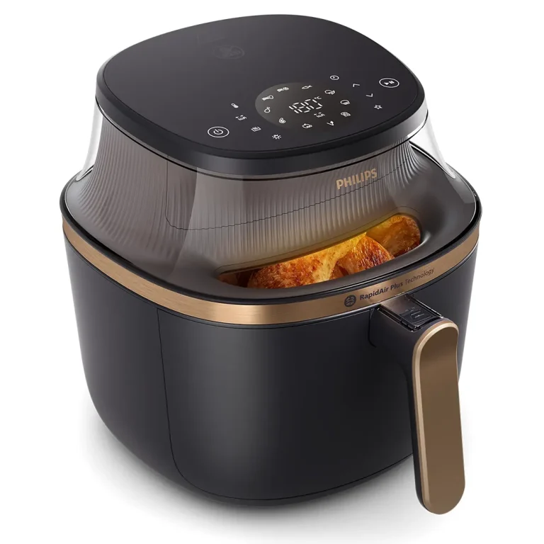 کمپانی فیلیپس در ساخت این محصول از جدید ترین طراحی خود استفاده کرده که بسیار خیره کننده و جذاب است و شما را در نگاه اول شیفته خود خواهد کرد. بدنه این محصول از جنس پلاستیک ضد حرارت ساخته شده که با رنگ جذاب مشکی و طلایی می تواند آشپزخانه شما را بسیار جذاب تر از آنچه که هست کند. بر روی بدنه این محصول نیز شیشه شفاف برای مشاهده عملکرد پخت تعبیه شده که می توانید به راحتی عملکرد پخت را مشاهده کنید.
