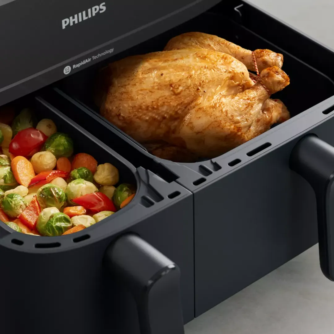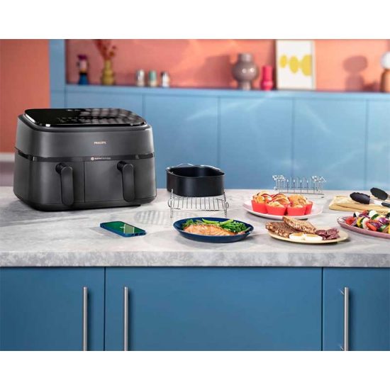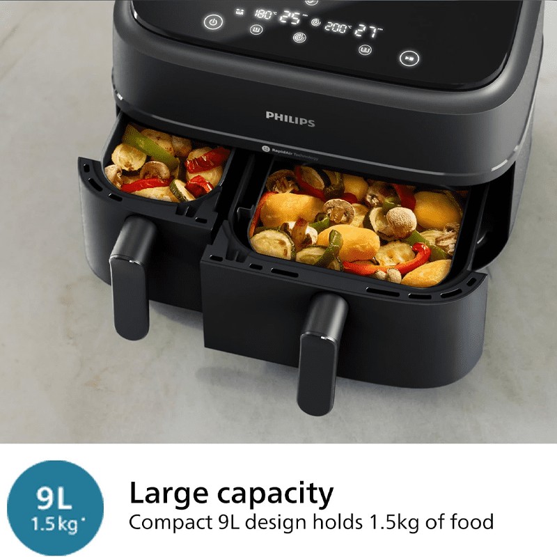 از آنجایی که این سرخ کن دارای دو محفظه پخت بوده می توان درون هر محفظه مواد غذایی یکسان یا متفاوت را قرار داده و آماده کرد. زمان‌ های پخت را به‌ طور خودکار در 2 کشو همگام ‌سازی کنید تا هر دو غذای شما با هم آماده سرو شوند. سیستم خاموش شدن خودکار موجب شده تا بعد از پخت غذا، دستگاه خاموش گردد و احتمال سوختن به شدت کاهش یابد.