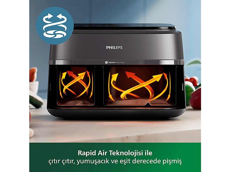 هنگام آشپزی با این سرخ کن دیگر خبری از سوختن یا خام بودن غذا نیست. به لطف فناوری Rapid Air چرخش حرارت به بهترین نحو اطراف غذا انجام می شود تا هر بار نتایج عالی و غذای ترد، لطیف و یکنواخت پخته شده را دریافت کنید. اکنون می توانید از غذاهای خوشمزه، ترد و سالم بدون نگرانی بابت مضر بودن و بدون کاهش طعم و مزه لذت ببرید.