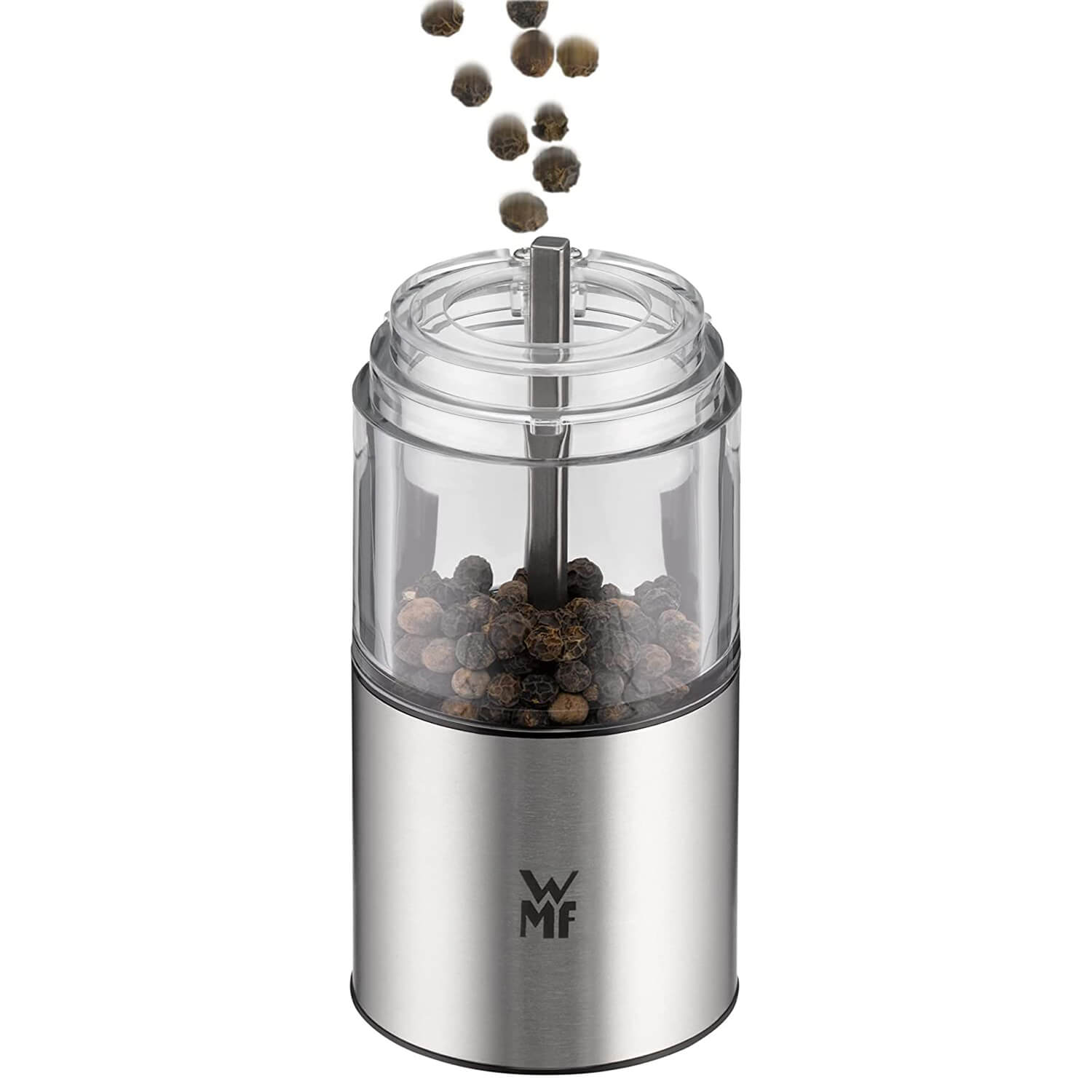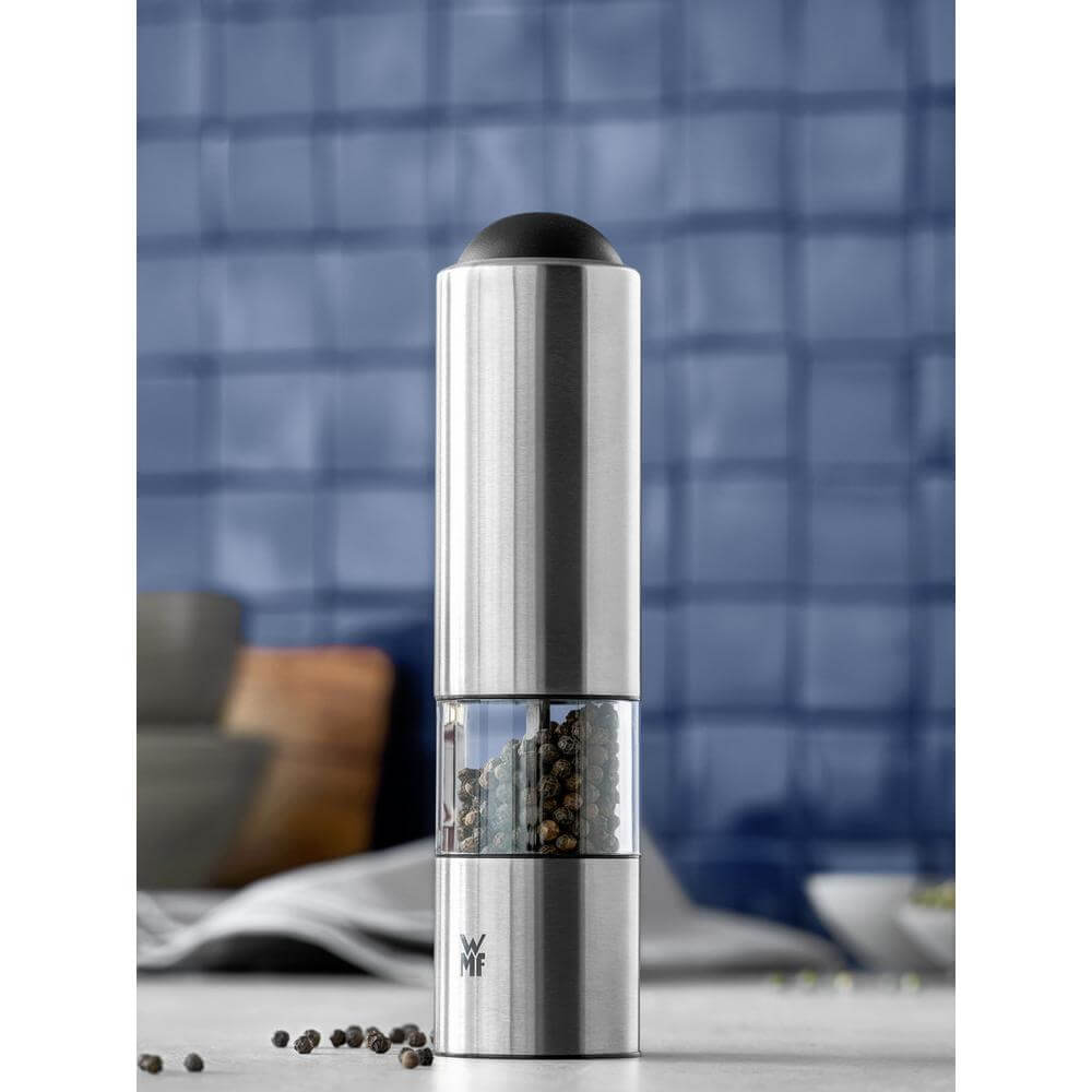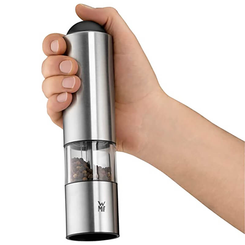 با فلفل و نمک ساب دبلیو ام اف مدل WMF Electric Salt Pepper Mill آسیاب کردن با فشار دادن یک دکمه به بازی تبدیل می شود . این آسیاب مجهز به آسیاب سرامیکی با کیفیت بالا می باشد . موتور الکتریکی قدرتمند این امکان را به شما می دهد تا توان سنگ زنی بالایی داشته باشد . تنظیم درجه آسیاب نیز امکان پذیر است (از درشت تا ریز) . نمک و فلفل را وارونه آسیاب کنید . در آسیاب های ادویه مکانیسم آسیاب در بالا قرار دارد و هیچ اثری روی میز باقی نمی گذارد .