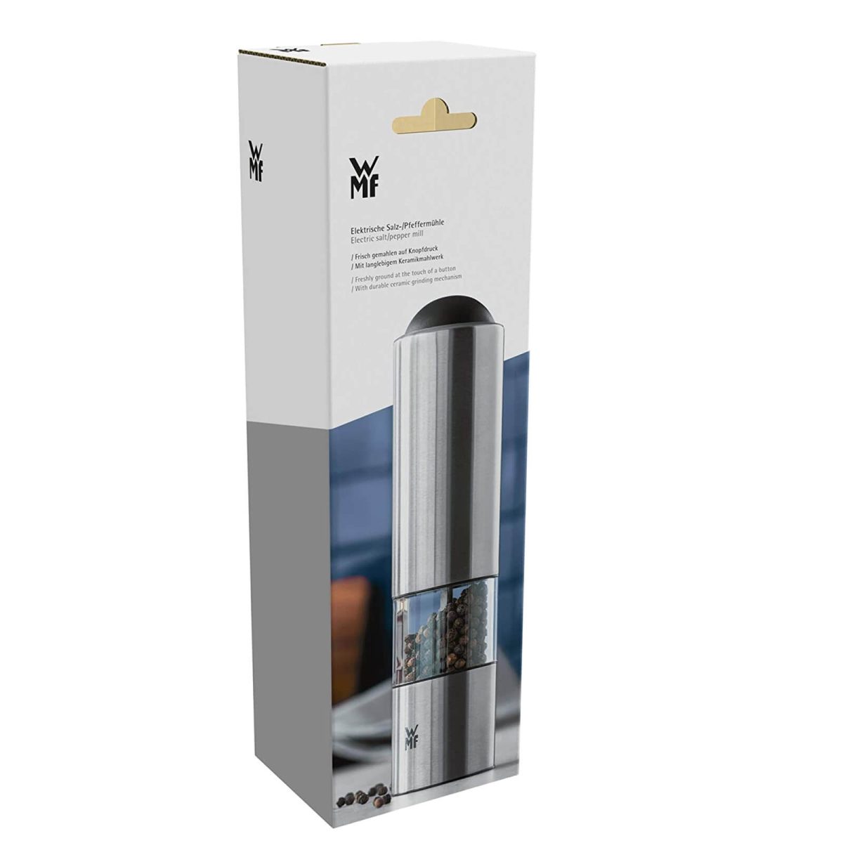 با استفاده از آسیاب نمک و فلفل الکتریکی وی ام اف WMF Electric Salt Pepper Mill، میتوانید با یک دکمه ساده، به راحتی نمک و فلفل خود را آسیاب کرده و از غذاهای خود لذت ببرید. این آسیاب با آسیاب سرامیکی با کیفیت بالا و موتور الکتریکی قدرتمند، توان سنگزنی بالایی را داراست و به شما امکان میدهد تا درجه آسیاب را از درشت تا ریز تنظیم کنید. برای استفاده، کافیست نمک و فلفل خود را درون آسیاب قرار داده و دکمه آسیاب کننده را فشار دهید تا به راحتی و با سرعت بالا نمک و فلفل شما آسیاب شود. همچنین، مکانیزم آسیاب در بالای دستگاه قرار گرفته است که باعث میشود هیچ اثری روی میز باقی نماند.اگر به دنبال یک آسیاب نمک و فلفل با کیفیت، ساده و کارآمد هستید، WMF Electric Salt Pepper Mill گزینهی بسیار خوبی است.