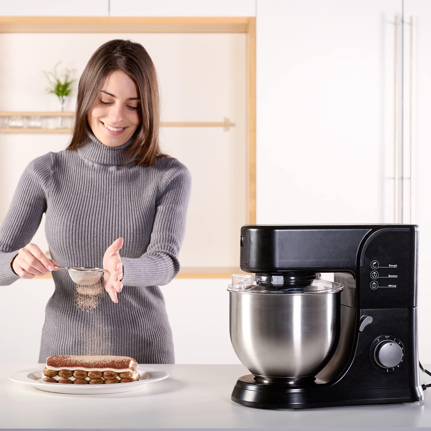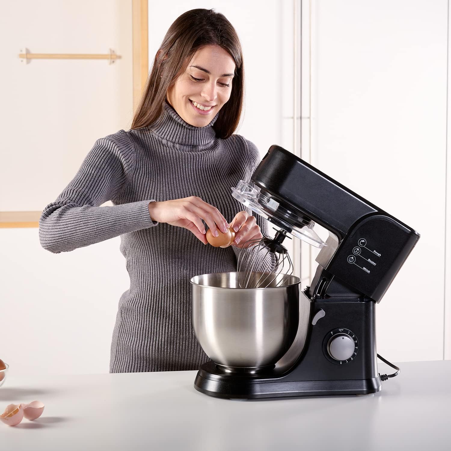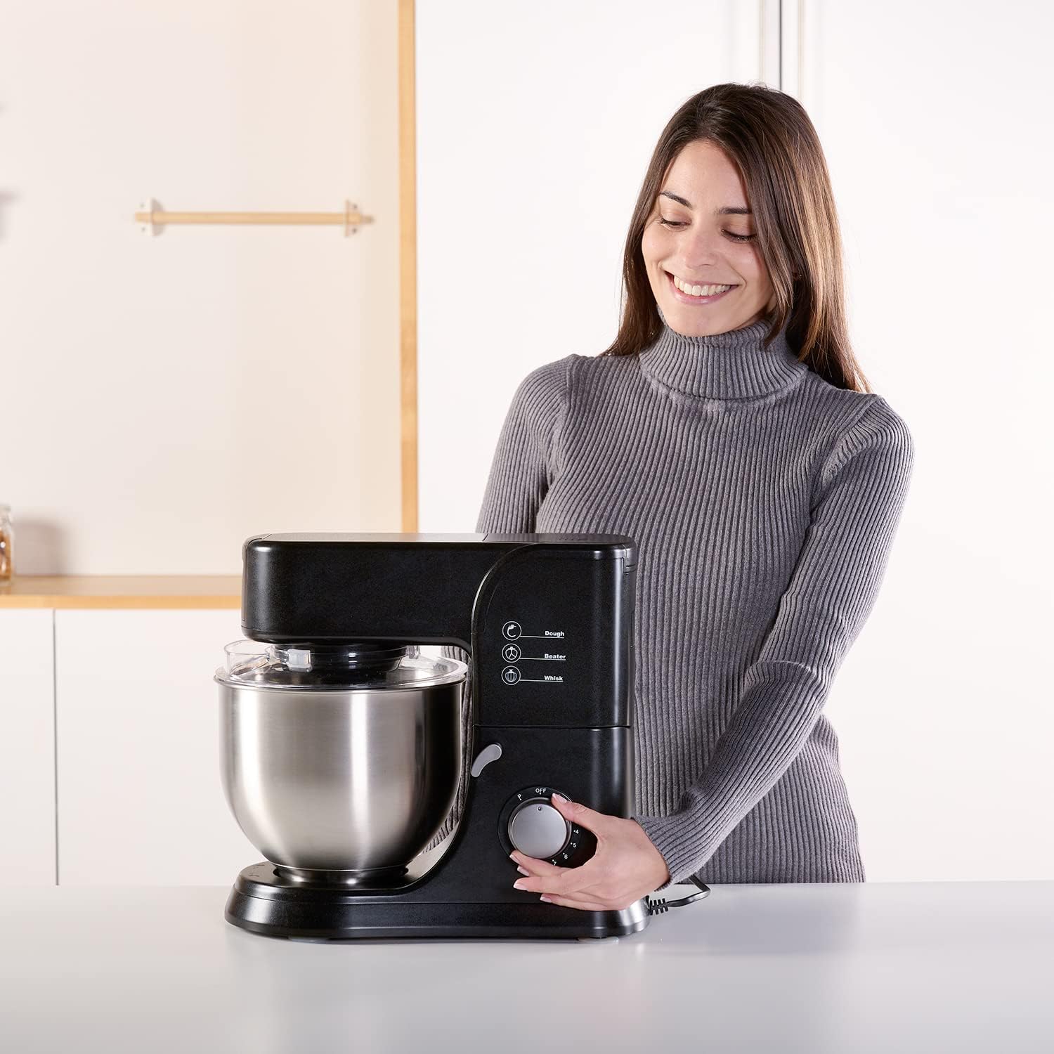 قدرتمند: این همزن با موتور ۱۰۰۰ واتی خود، برای مخلوط کردن و ورز دادن آسان مقادیر زیادی مواد اولیه ایده‌آل است. علاوه بر این، کاسه استیل ضد زنگ محکم و قابل شستشو در ماشین ظرفشویی آن با ظرفیت ۵.۲ لیتر، امکان تهیه انواع مخلوط‌های شما را فراهم می‌کند.