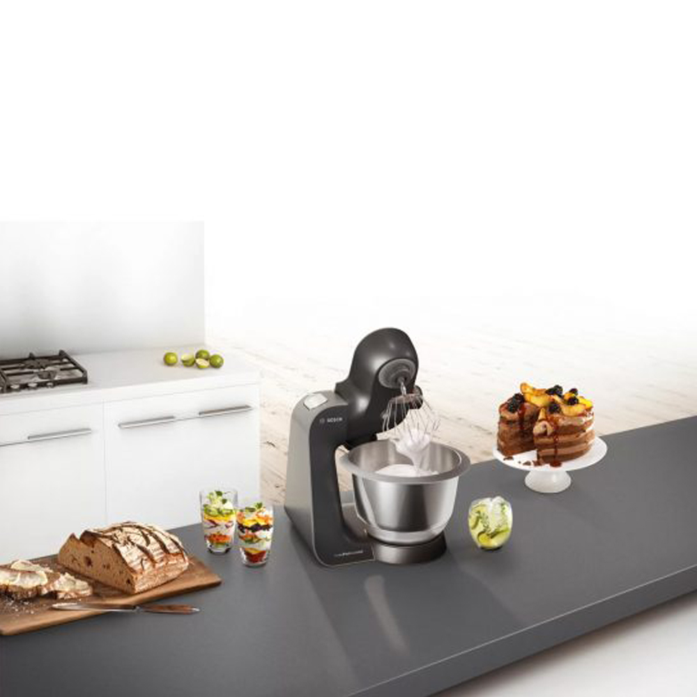 ماشین آشپزخانه بوش مدل MUM57B224 یکی از محصولات سری 5 بوش است، این «غذاساز» بوش مشکی با قدرت 900 وات یکی از پرکاربردترین محصولات بوش می باشد. ماشین آشپزخانه بوش مدل MUM57B224 ساخت کشور اسلوونی و تحت لیسانس بوش آلمان ساخته می شود. این مدل غذاساز سری 5 Professional یکی از تولیدات با کیفیت از معتبرترین تولیدکنندگان لوازم خانگی است که با استاندارد جهانی تولید شده و سالیان زیاد است که این محصول پرفروش در سر تا سر دنیا مورد استقبال خریداران غذاساز قرار گرفته است. ماشین آشپزخانه بوش 900 وات با موتور قدرتمندش امکان مخلوط کردن خمیر های سنگین را فراهم می کند. شما به راحتی و در مدت زمان کوتاه می توانید انواع کیک، شیرینی، بستنی، سس و دسرهای خوشمزه را با لوازم جانبی ماشین آشپزخانه بوش مدل MUM57B224 آماده کنید.