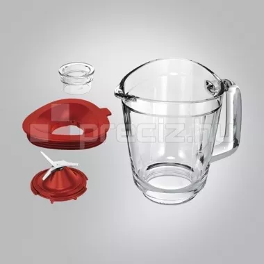 ظرف شیشه ای تقریباً 1 لیتر گنجایش دارد و دارای یک فیلتر آب میوه همراه است. درب پارچ دارای یک پیمانه اندازه گیری یکپارچه است.