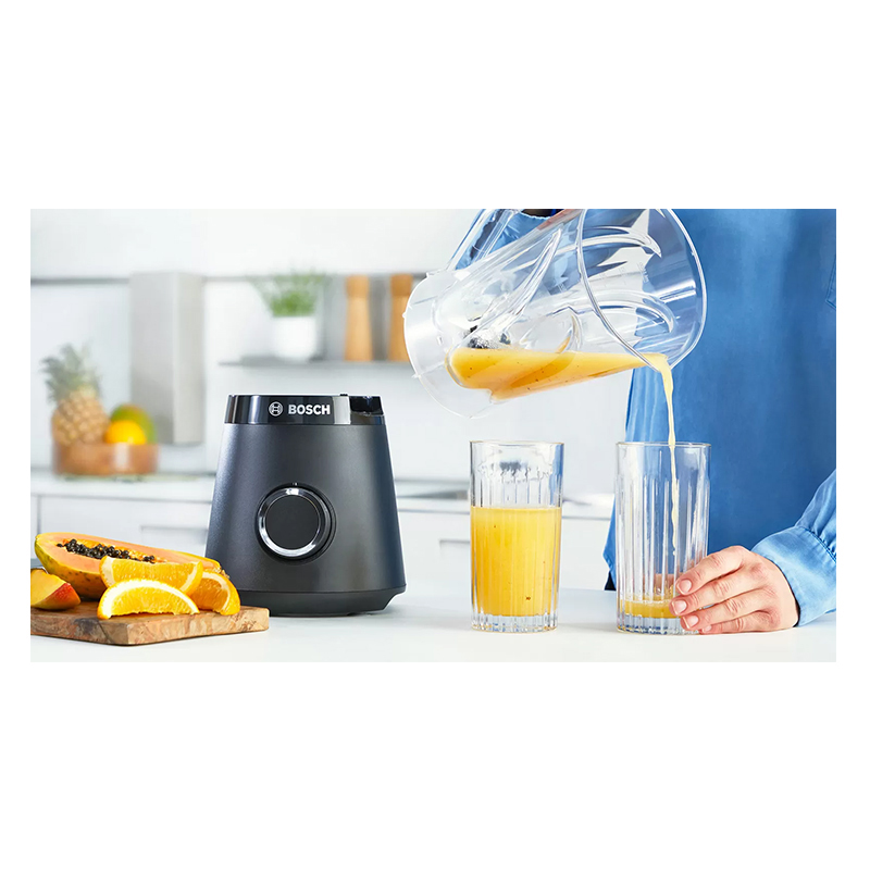 پارچ این مخلوط کن بوش از جنس تریتان است و در برابر مواد غذایی سرد و همچنین موتد غذایی گرم مانند انواع سوپ کیفیت خود را حفظ میکند.