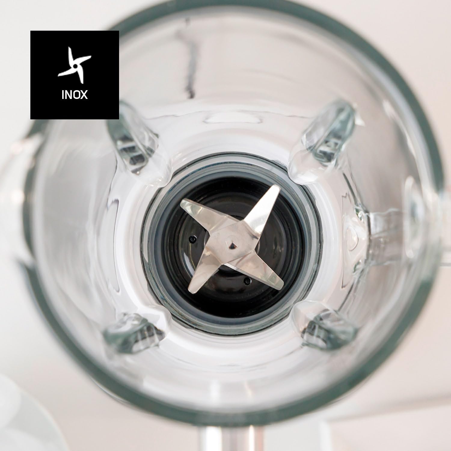 دارای ظرف شیشه ای مدرج 1.5 لیتری میباشد ، 2 سرعت + پالس ، تیغه های فولادی ضد زنگ 4 لبه قابل جابجایی ، قابلیت یخ شکستن را دارد ، پایه های ضد لغزش مانع تکان خوردن دستگاه در حین کار میشود ، سیستم امنیتی دستگاه فقط زمانی فعال می شود که شیشه در جای خود محکم باشد ، شیشه و تیغه قابل شستشو در ماشین ظرفشویی میباشد .