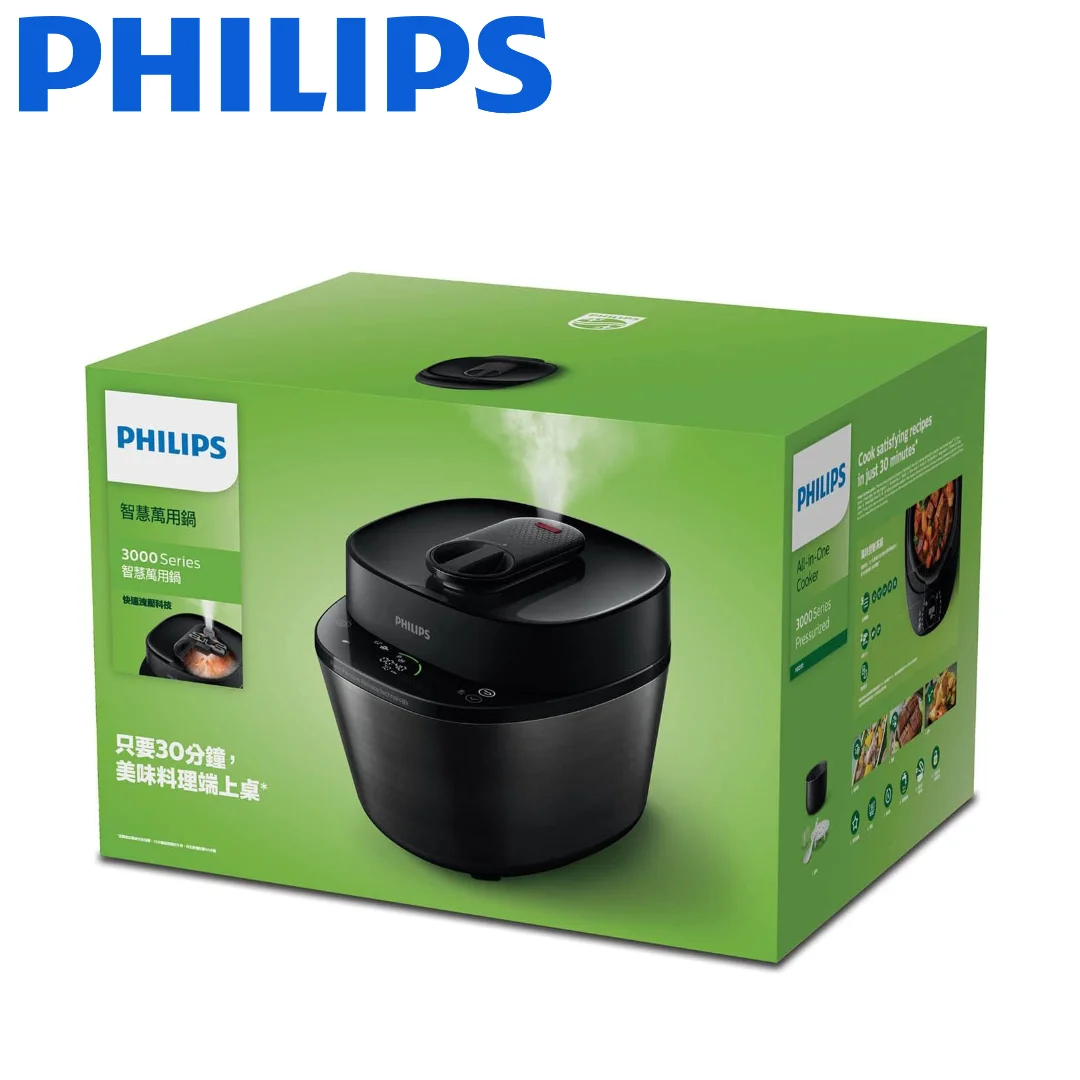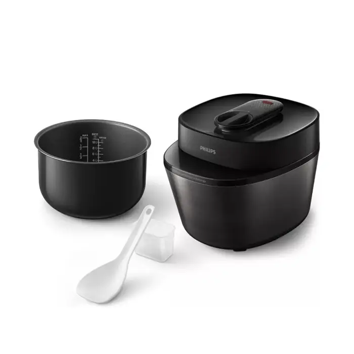 سیستم ایمنی: شرکت فیلیپس برای این محصول خود 18 سیستم حفاظت ایمنی برای پخت و پز بدون نگرانی در نظر گرفته که یکی از آنها خاموشی خودکار میباشد. نحوه عملکرد این سیستم اینگونه است که اگر دستگاه بدون آب روشن شود یا دمای آن خیلی بالا رود، دستگاه به طور خودکار خاموش می شود. از دیگر ویژگی های امنیتی این مولتی کوکر میتوان به پایه های ضد لغزش آن اشاره کرد که در هنگام کار از هرگونه لغزش جلوگیری میکنند.