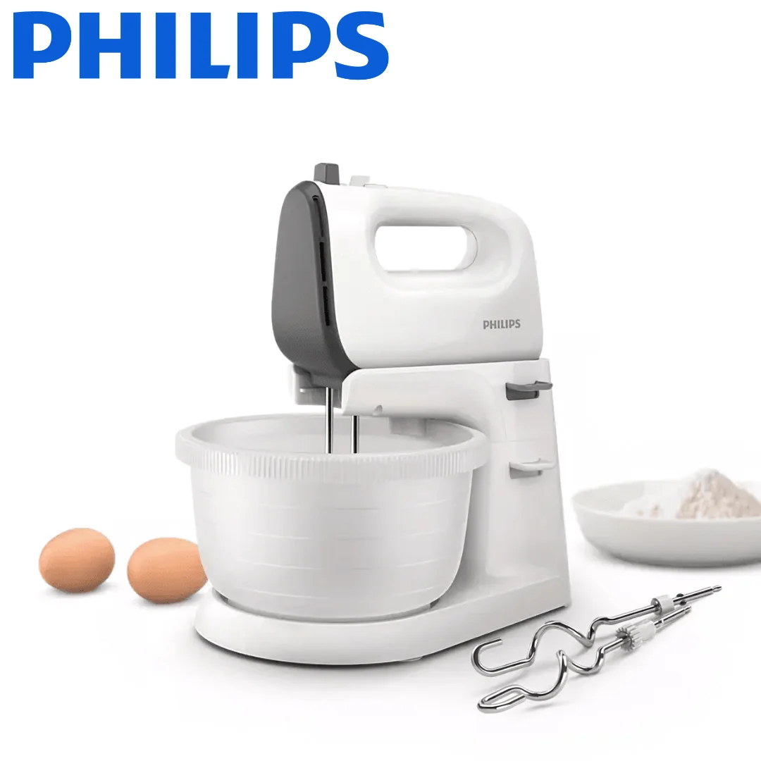 همزن فیلیپس دارای یک کاسه با ظرفیت 3 لیتر است که از آن برای ترکیب و مخلوط کردن هر آنچه که دوست دارید می‌توانید استفاده کنید. جنس این کاسه از پلاستیک و بسیار مقاوم و باداوم است. یکی از نکات جذاب مربوط به این کاسه، قابلیت چرخش اتوماتیک آن می باشد. یعنی در حین کار کردن دستگاه، کاسه آن به طور اتوماتیک 360 درجه می‌چرخد تا تمام مواد درون کاسه کاملا با هم ترکیب شوند و مخلوطی یک دست به دست آید.