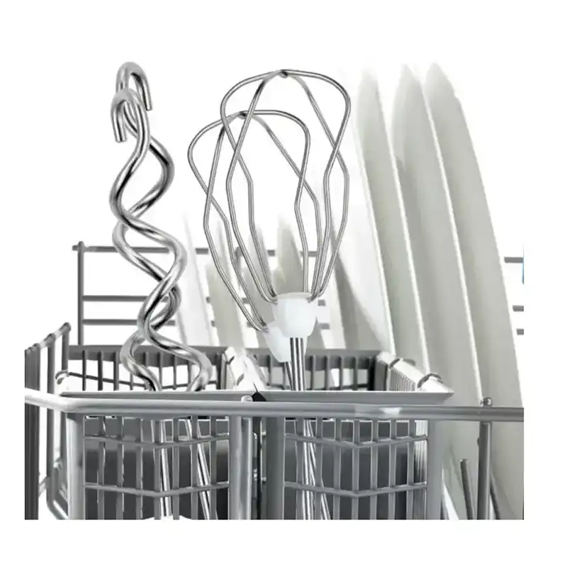 از طریق دکمه ی بزرگ بالای دسته همزن این پره ها بصورت جداگانه از همزن جدا میشوند. جنس این دو سری از استیل ضد زنگ میباشد که تمام مواد را براحتی مخلوط میکند اصلا با کارکرد بالا و مداوم حتی شستشو زنگ نمیزند تا سالها بدون فرسودگی قابل استفاده میباشد. تمام محصولات و قطعات همزن، دارای قابلیت شستشو با ماشین ظرفشویی هستند. کاسه و میله ها را پس از استفاده بلافاصله با آب تمیز کنید تا مواد به آنها نچسپد و برای سری بعد قابل استفاده باشد اما جهت تمیزی بدنه یعنی جایگاه مخصوص موتور همزن باید از پارچه ای مرطوب استفاده کنید تا موتور خراب نشود.