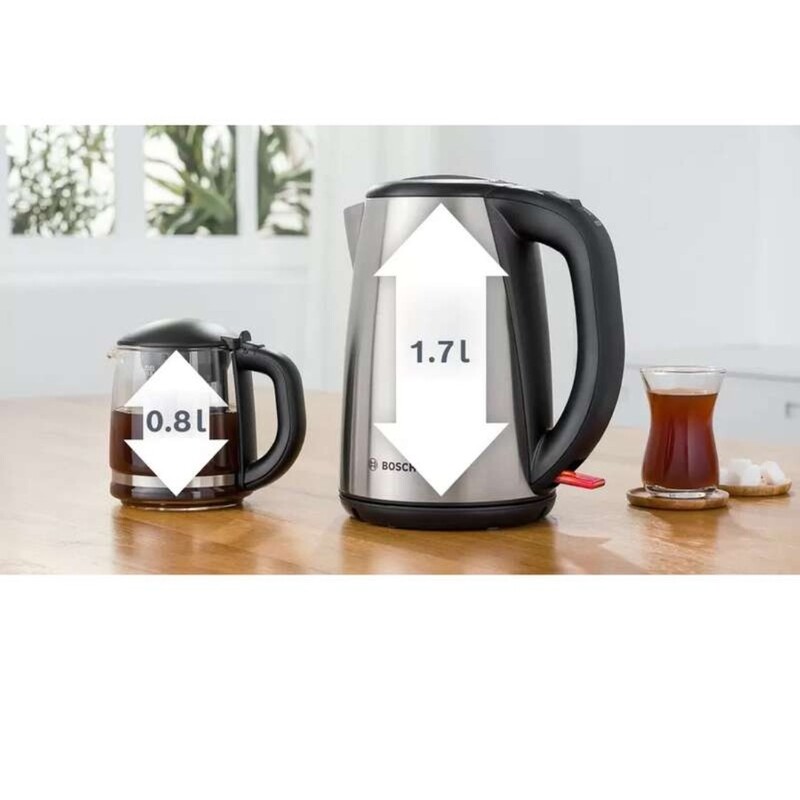 چای ساز بوش مدل BOSCH TTA5603 با ظرفیت 1.7 لیتر است. قوری آن با ظرفیت 0.8 لیتر از جنس پیرکس است که تلفیق دو جنس شیشه و استیل این مدل را منحصر به فرد ساخته است.