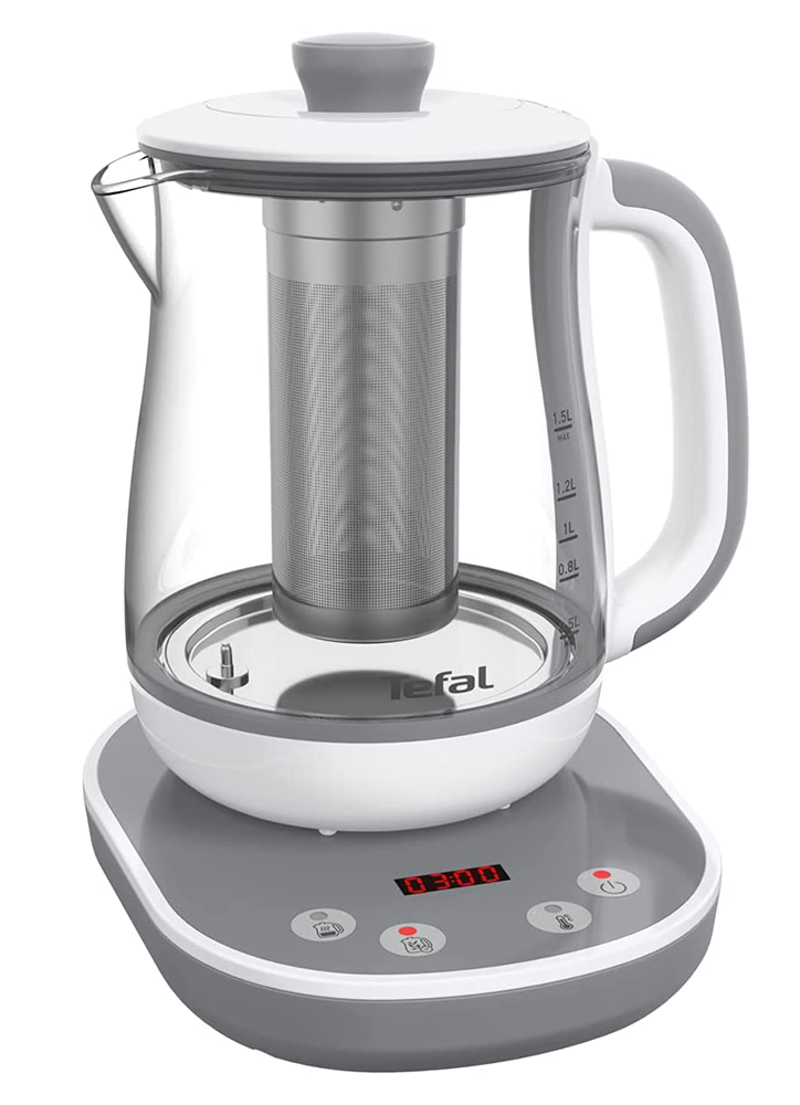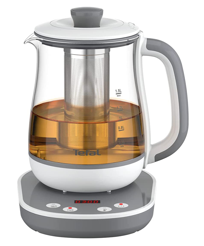 این چای‌ساز تفال مدل Bj551B10  هر زمان که دوست داشتید چای مورد علاقه‌تان را با کیفیت عالی دم کنید. زیرا تمام فرآیند دم‌آوری چای با دقت و تنظیم دما تحت کنترل شماست. دمای این دستگاه در ۸ حالت قابل تنظیم است و ظرفیت ۱.۵ لیتری این چای‌ساز برای کل خانواده کفایت می‌کند. ویژگی مهم این چای ساز قابلیت گرم نگهداشتن چای در دمای مناسب است. اگر عادت دارید که در طول روز چای زیاد بنوشید این دستگاه چای را تا ۸ ساعت گرم نگه می‌دارد تا هروقت خواستید میل کنید. از آنجا که این دستگاه محصول شرکت تفال است از کیفیت عالی برخوردار است. اگر کیفیت و طعم چای در اولویت انتخاب شماست این چای ساز را به شما پیشنهاد می‌کنیم.
