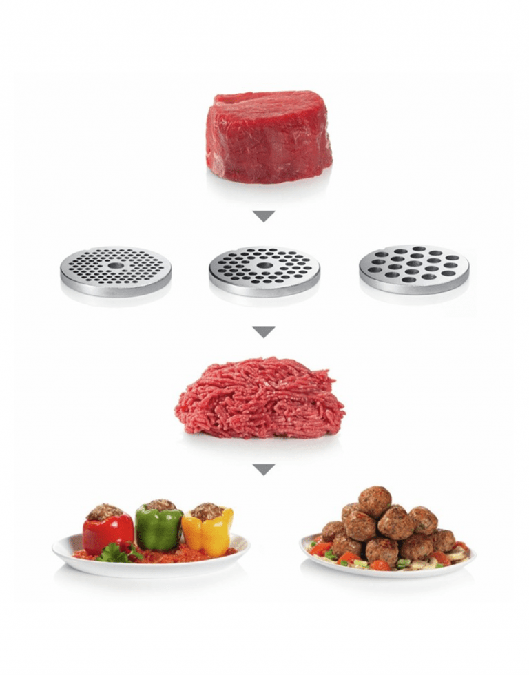 بعضی از چرخ گوشت ها قطعاتی کاربردی دارند. که تعداد این اقلام در برخی دستگاهها کم و در برخی زیاد است. چرخ گوشت بوش مدل MFW68640، سه عدد شفت مرکزی با منافذهایی در اندازه های ریز، متوسط و درشت دارد. این شبکه ها گوشت را در سایز دلخواه برایمان چرخ میکند و رشته های گوشت را در سایز متنوع را در اختیار قرار میدهد.