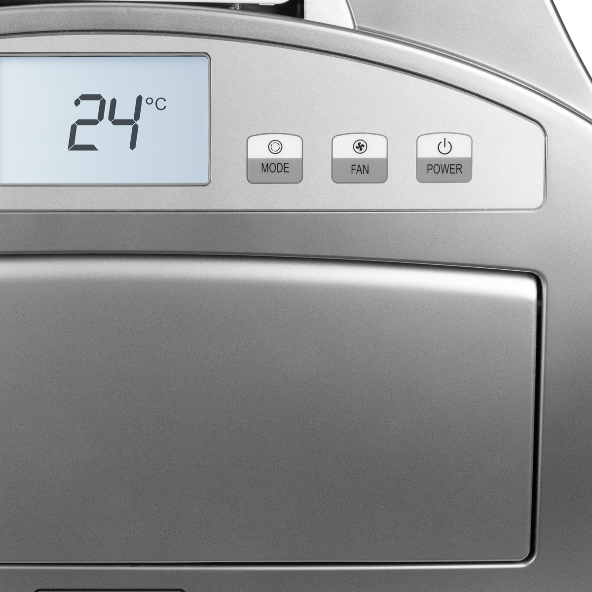 کنترل دما. ترموستات قابل تنظیم، دمای اتاق را تا دمای تنظیم شده خنک می‌کند. شامل تایمر ۲۴ ساعته و عملکرد خاموش شدن خودکار برای مصرف بهینه انرژی.