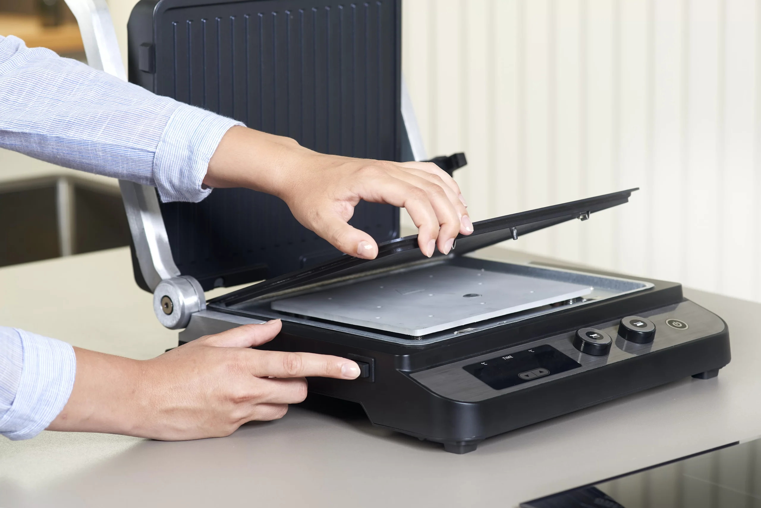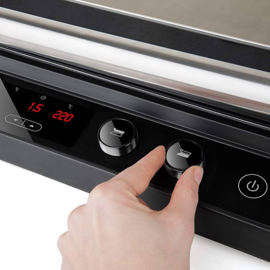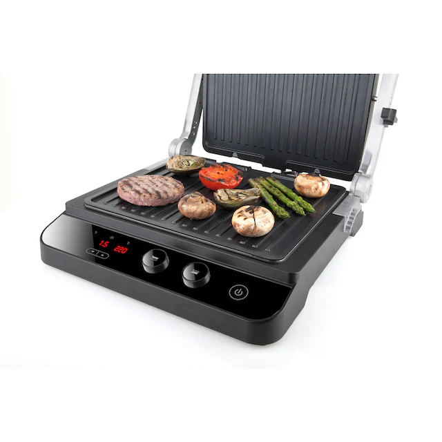 کنترل دمای دیجیتال Dual Zone به شما این امکان را می دهد که دمای صفحه بالا و پایین را بطور مستقل بین 60 تا 230 درجه سانتی گراد تنظیم کنید. تایمر تا 99 دقیقه دارد تا بتوانید زمان پخت را کنترل کنید. پس از رسیدن به زمان پخت، گریل به طور خودکار خاموش می شود.
