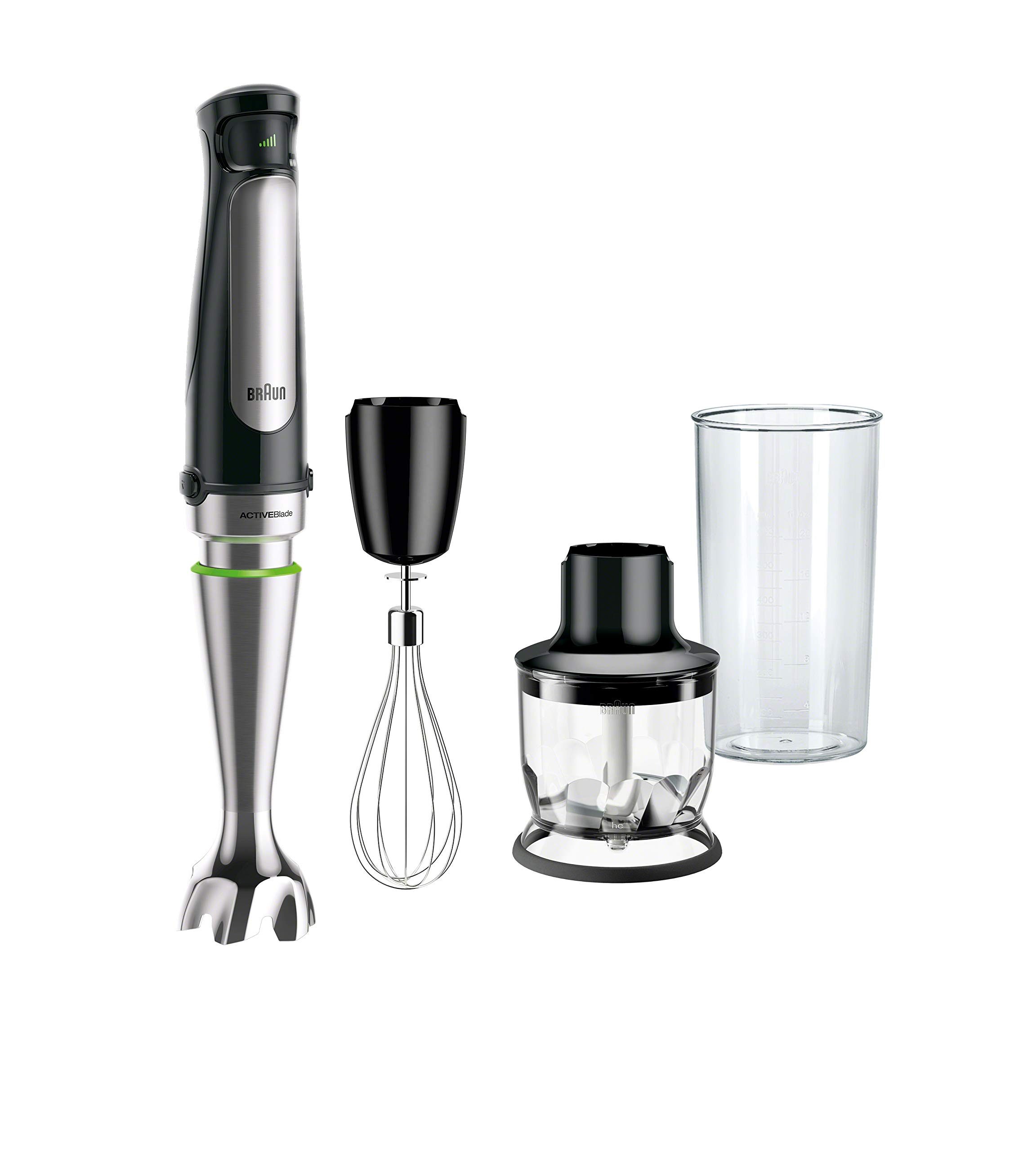 مخلوط کن دستی جدید Braun MultiQuick 7 برای آماده کردن غذاهای سالم برای خانواده و دوستان سریعتر و آسانتر طراحی شده است. اکنون همچنین با اولین فناوری ACTIVEBlade در جهان. پایه بلندر دستی انعطاف پذیر جدید 250 درصد سطح برش فعال تری را ارائه می دهد* – کمکی هوشمندانه برای آشپزخانه که کار زیادی را از دستان شما می گیرد. مخلوط کن دستی همچنین از فناوری Easy SmartSpeed استفاده می کند که به شما امکان کنترل را با لمس یک دکمه می دهد. با فشار دادن دکمه به راحتی می توانید سرعت را تنظیم کنید. *در مقایسه با مخلوط کن های دستی براون بدون فناوری ACTIVEBlade.